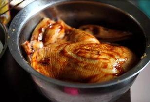 2. 吹皮:将腌制好的鸭子取出,用吹风机将鸭皮吹干,使其变得紧致。这一步非常重要,可以让鸭皮更加酥脆。